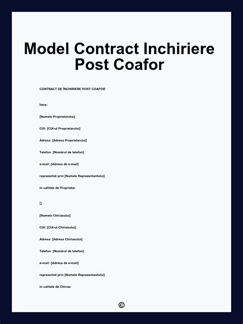 Esti proprietar sau administrator al unui salon de coafura si iti doresti sa inchiriezi un post de lucru? Atunci ai nevoie de un contract de inchiriere post coafor. Acest contract este un document juridic care stabileste conditiile de inchiriere a spatiului.