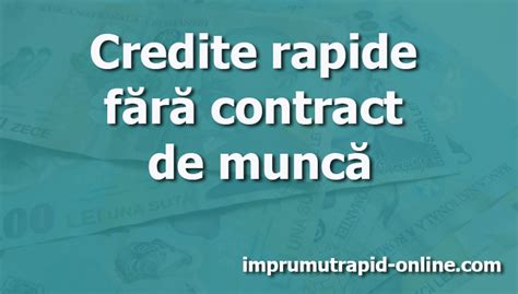 Un credit fără contract de muncă este un tip de împrumut care poate fi obținut fără a fi nevoie de un contract de muncă tradițional. Aceste credite sunt adesea oferite de instituții financiare nebancare, cum ar fi IFN-uri (Instituții Financiare Nebancare).